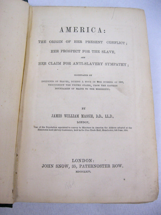 Anti-Slavery Mission to America Origin of Present Conflict by James W Massie