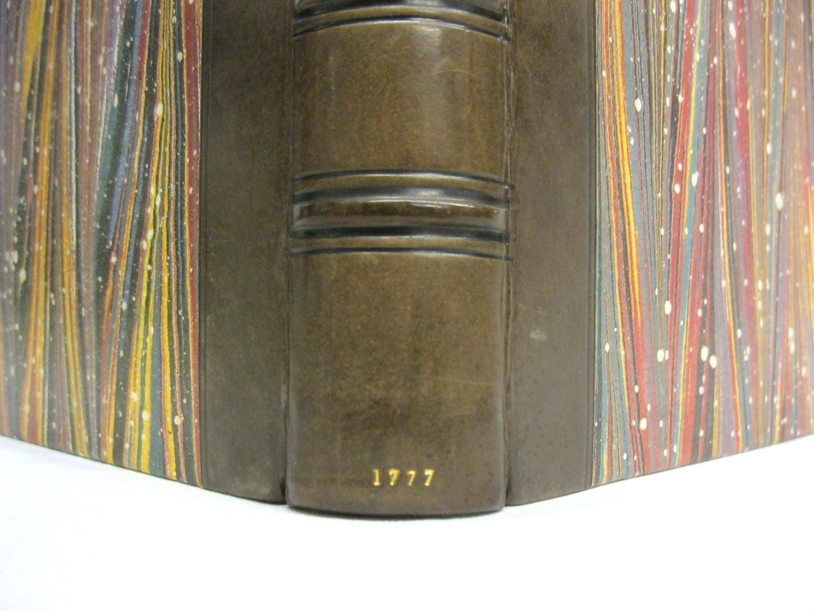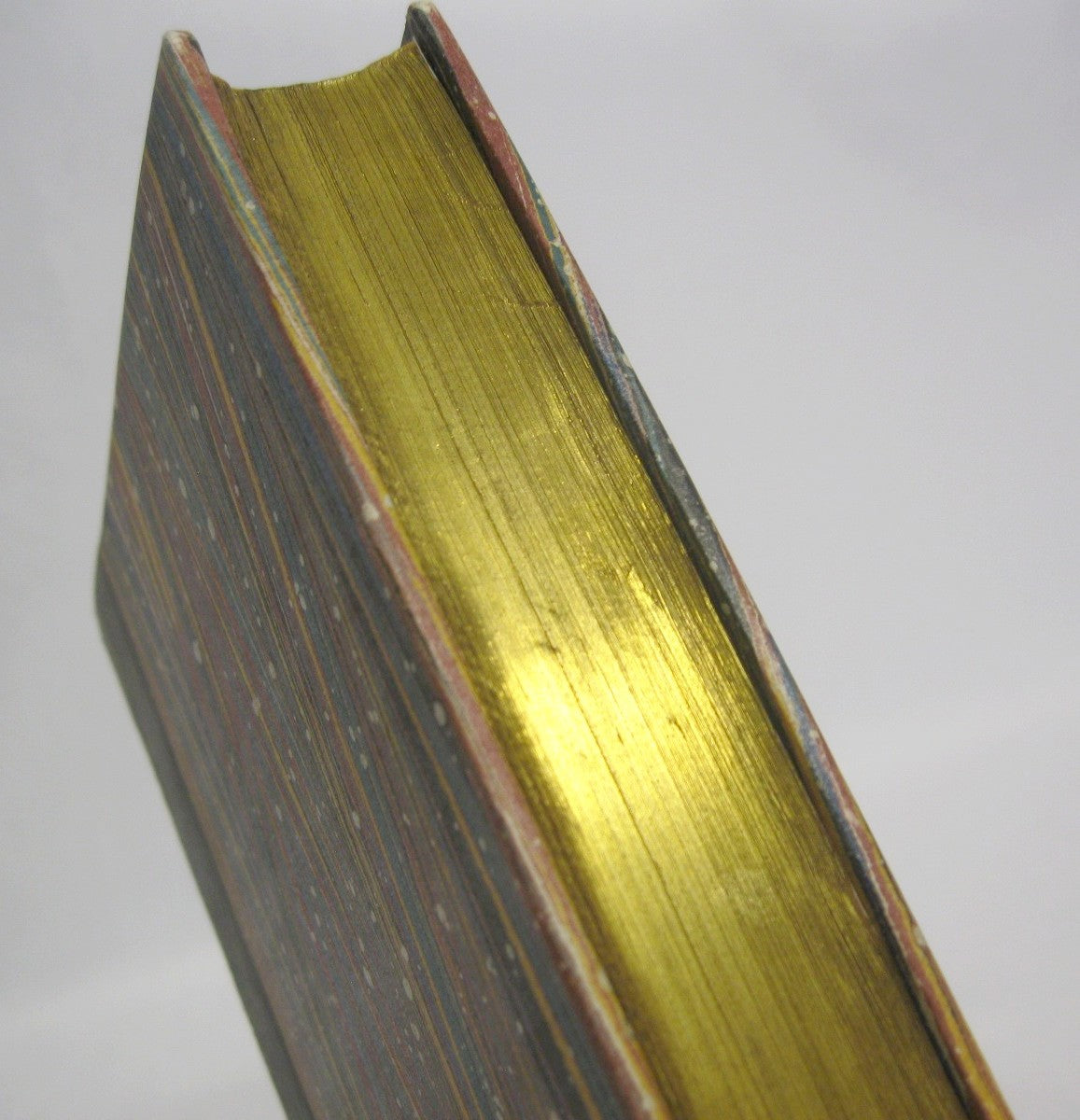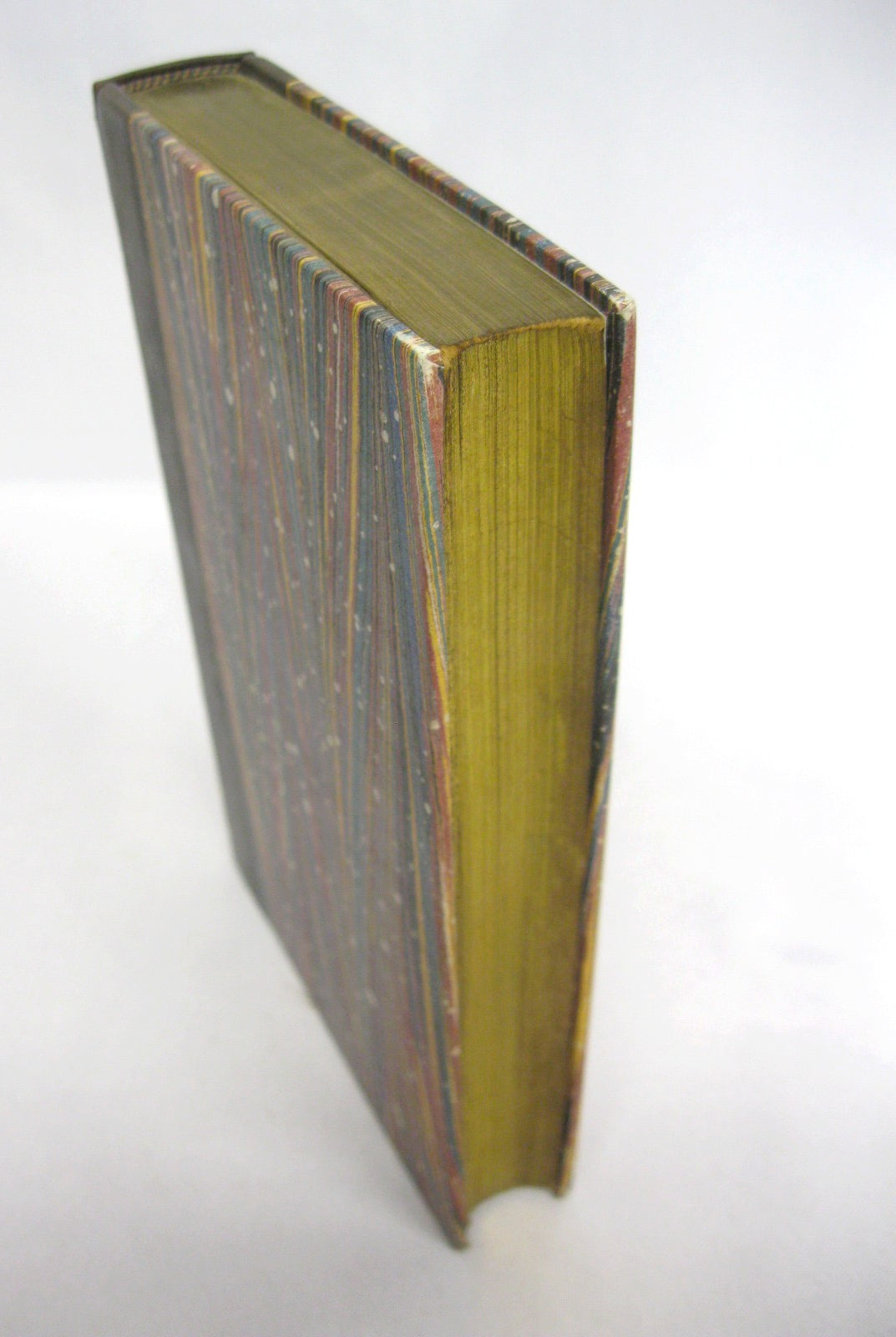 Condition: Modern rebinding with leather spine and raised bands, decorated paper covers, in beautiful condition with minimal noticeable wear to edges. The page edges are gilt, which remain nice and bright. Binding is firm and tight. The text has some minor foxing/discoloration throughout, but nothing excessive. Besides the ghosting from the plates, the most notable discoloration is around the edges of the title page. An exceptionally presentable copy the likes of which you likely won't see again.