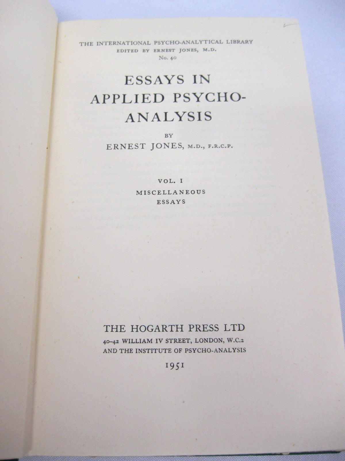 The International Psycho-Analytical Library, edited by Ernest Jones. #40.