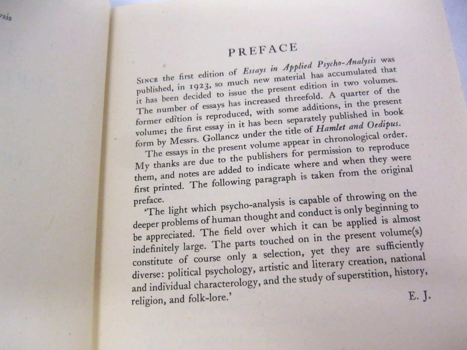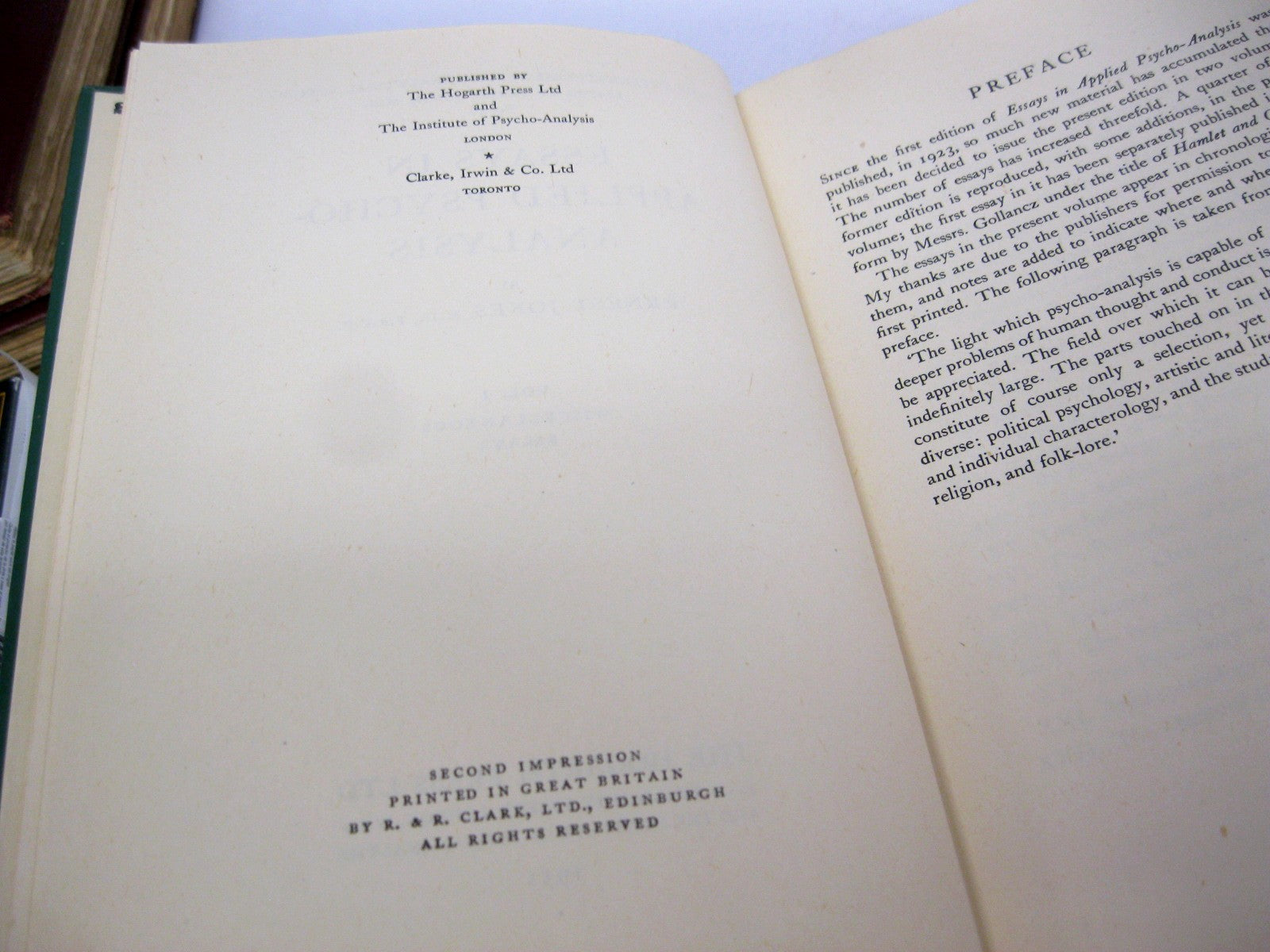 Essays in Applied Psychoanalysis by Ernest Jones [Saul Rosenzweig's copy]