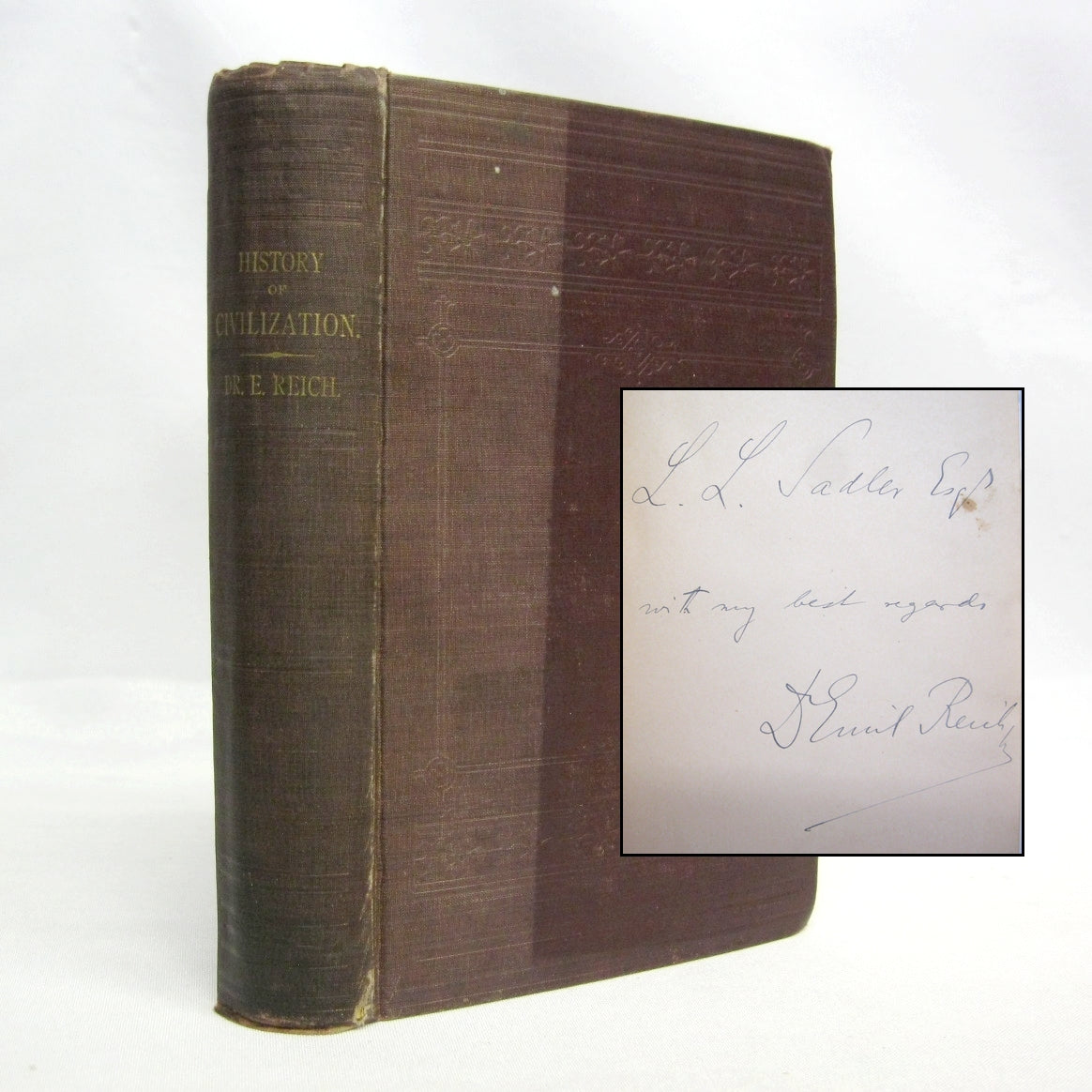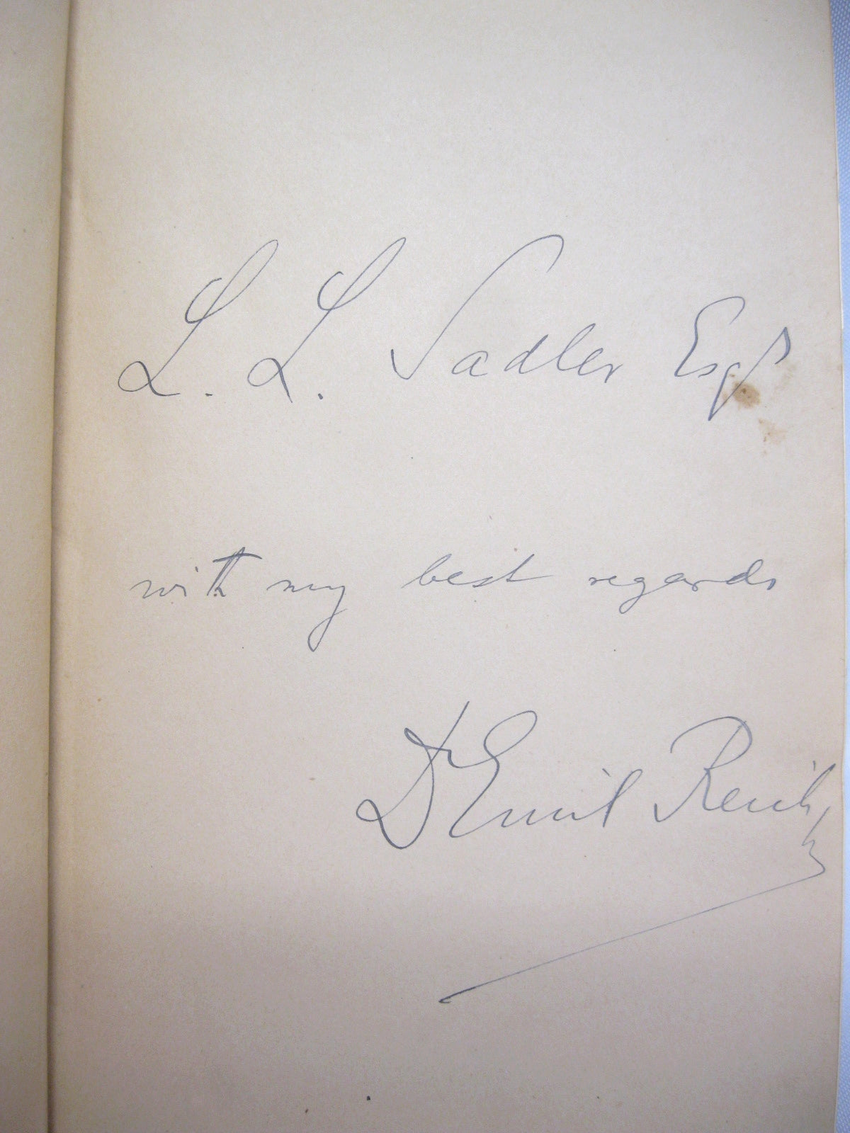 SIGNED and inscribed by Reich on front blank page: "L.L. Sadler, Esq. with my best regards, Emil Reich"