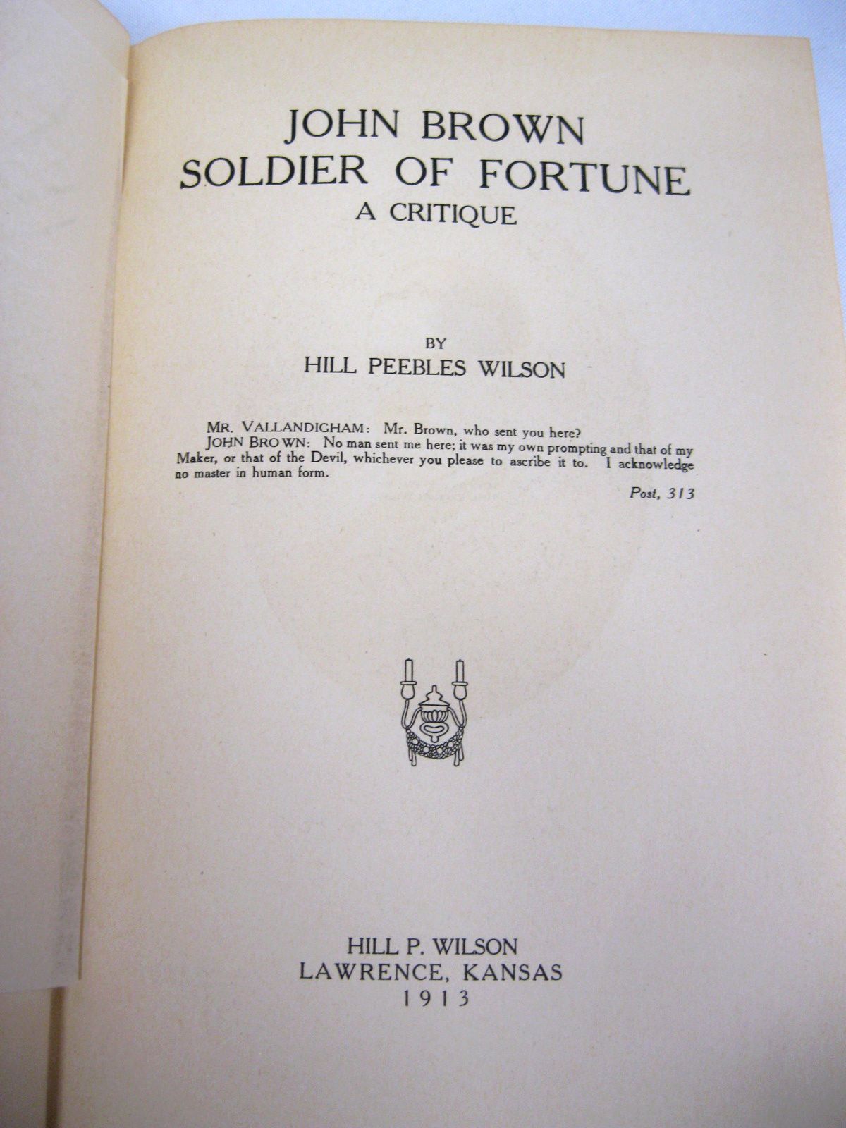 John Brown, Soldier of Fortune; a Critique by Hill Peebles Wilson