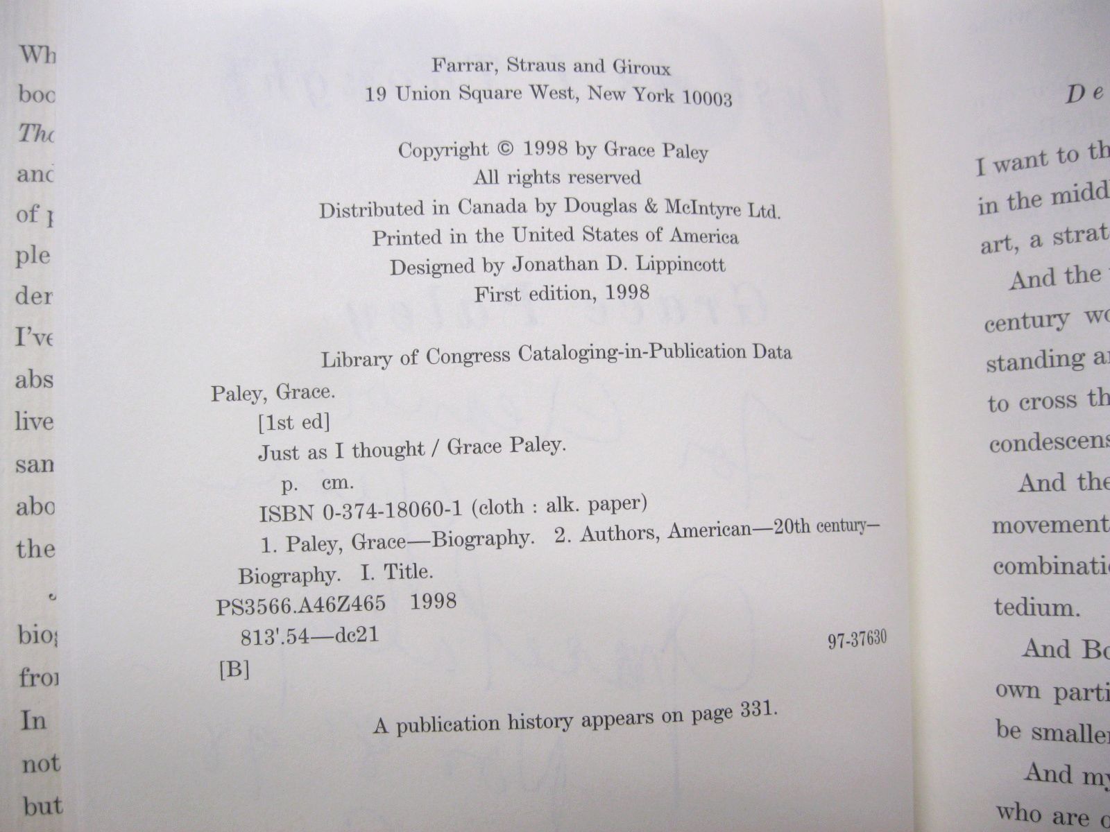 SIGNED and inscribed by Paley on title page, dated Nov. 8 '98, Denver.