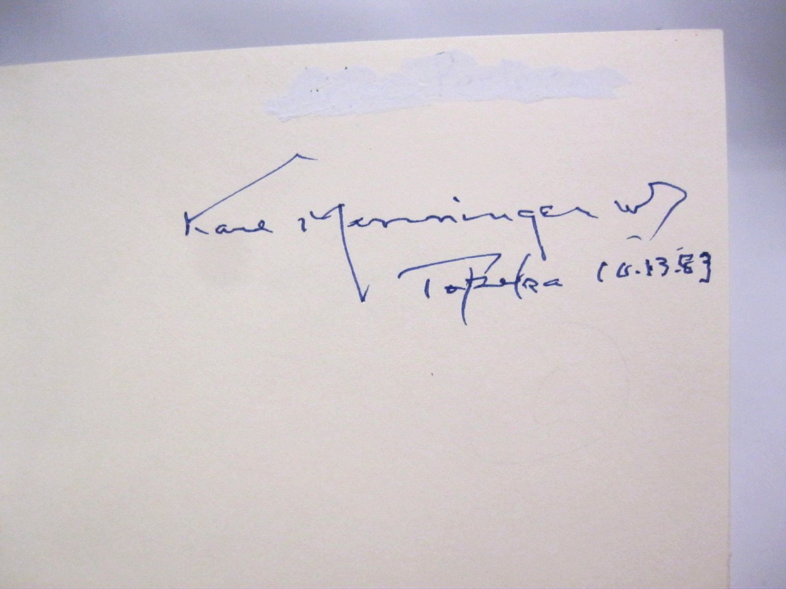 SIGNED by Menninger on ffep, "Topeka 10.13.83".