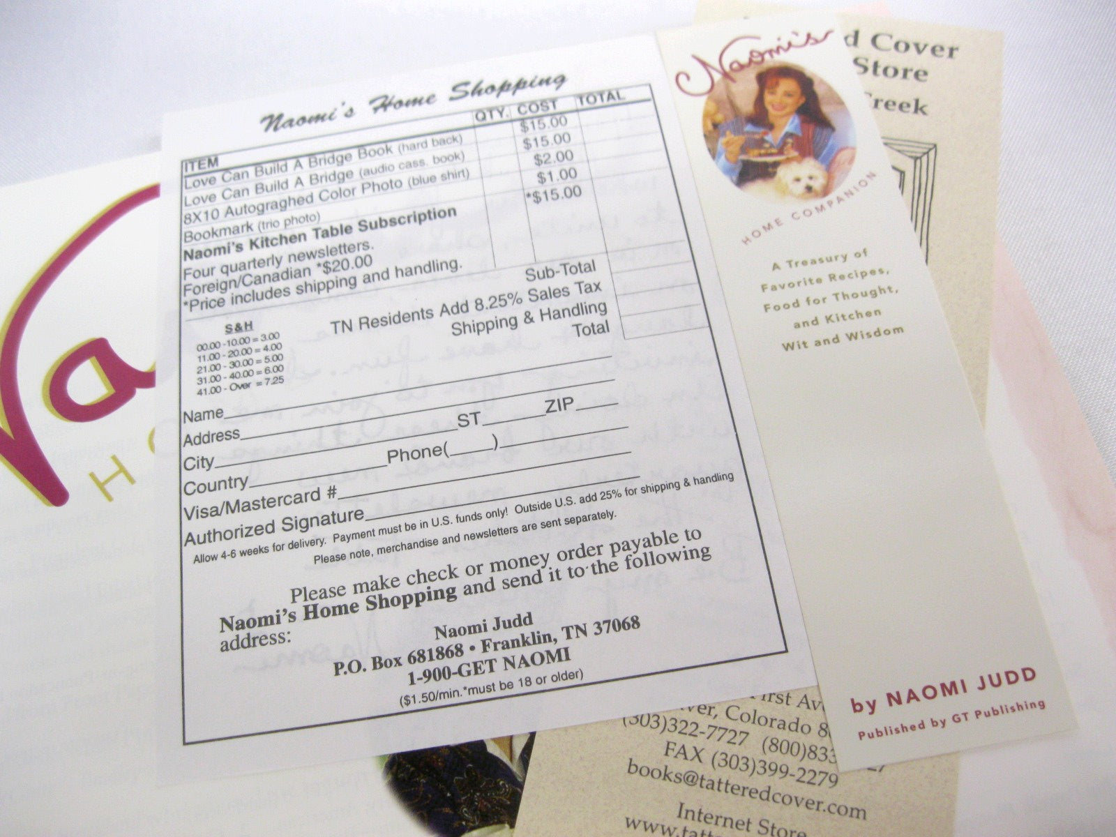 Condition: Oversize hardcover, overall excellent condition with very minor apparent general wear to the dust jacket. Includes book-specific bookmark, and blank order form for Naomi's Home Shopping--the note on the back of it is undoubtedly pre-printed rather than handwritten. Interior is clean and neat. Binding is firm.