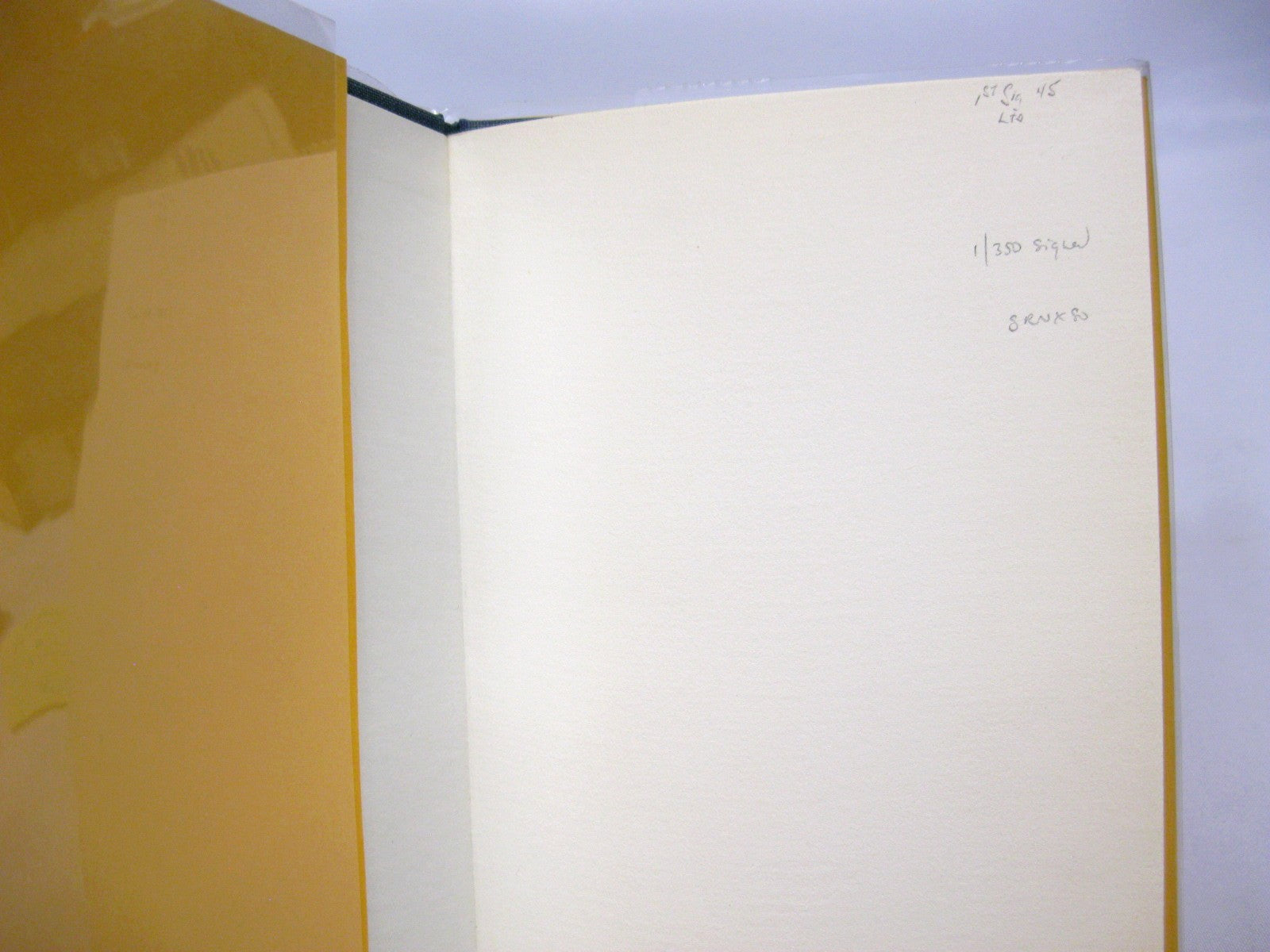Condition: Hardcover with plain yellow dustjacket, which in turn is in mylar. Small previous bookdealer's notations in pencil on the ffep, otherwise interior is neat and clean. This book is VERY short, the main text of which consists of only 4 pages, plus title page, limitation page, etc. Binding nice and firm.