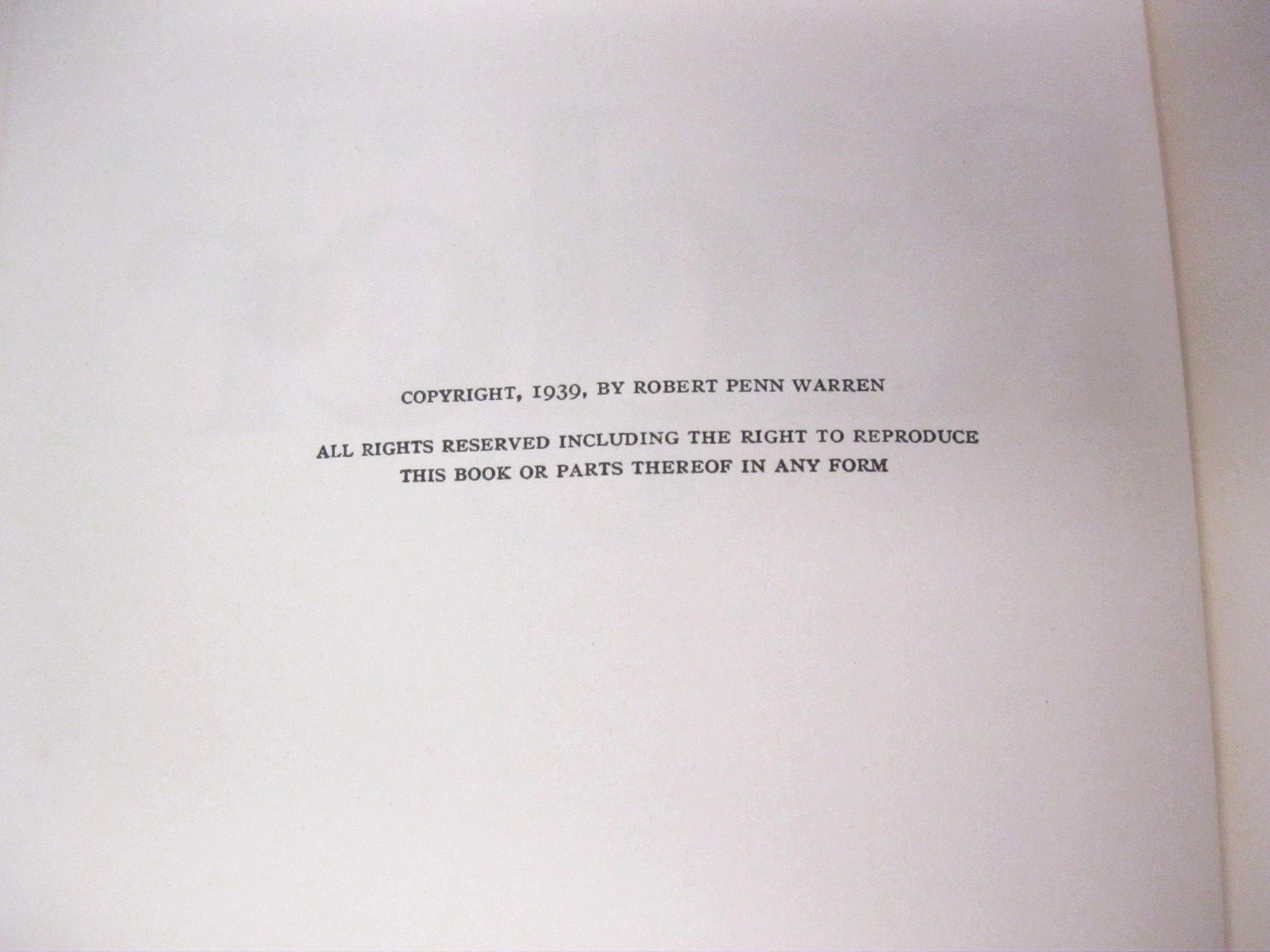 SIGNED by Robert Penn Warren on the ffep, and dated March 1939. The author's first novel.