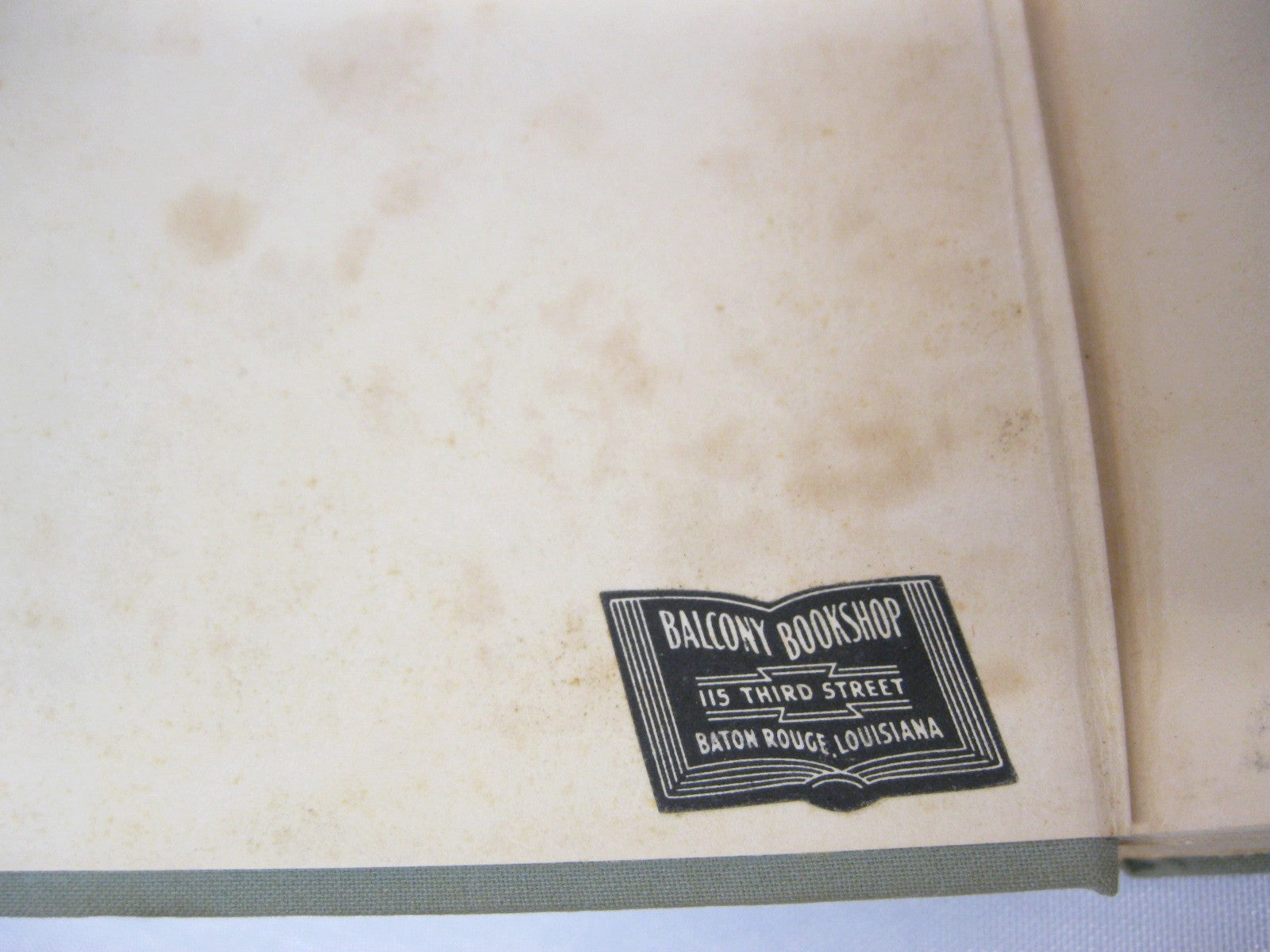 Condition: No dust jacket. Cover boards have minor general wear, spine somewhat faded. Previous owner's name on inside cover with a small bookseller's ticket to the lower front cover (Balcony Bookshop from Baton Rouge, Louisiana). Inside covers, front and back, have some darkening, otherwise interior is clean and neat. Binding firm.