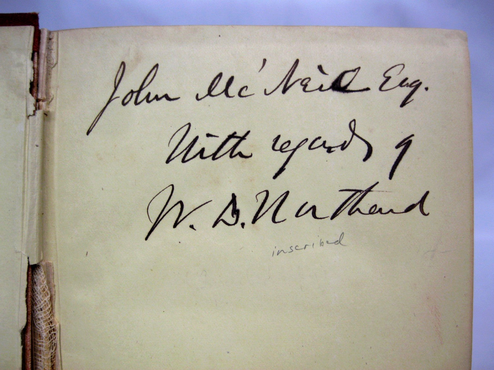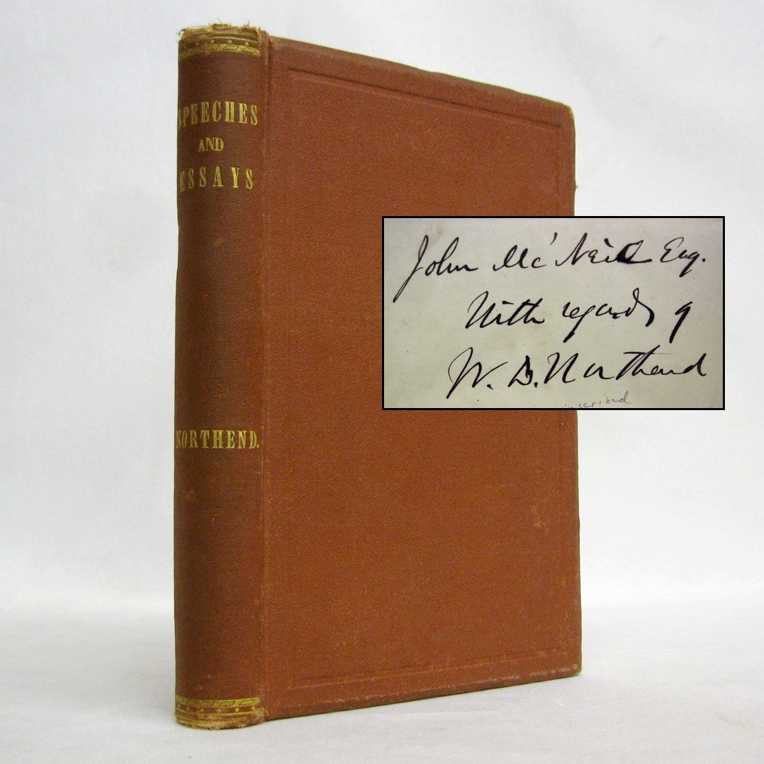 Signed and inscribed on ffep "John McNeil Esq, with regards of W.D. Northend". While difficult to determine for certain, it seems likely that this John McNeil would have been the John McNeil (February 14, 1813 – June 8, 1891) who was a general in the Union Army during the American Civil War and involved in several campaigns. (wiki)