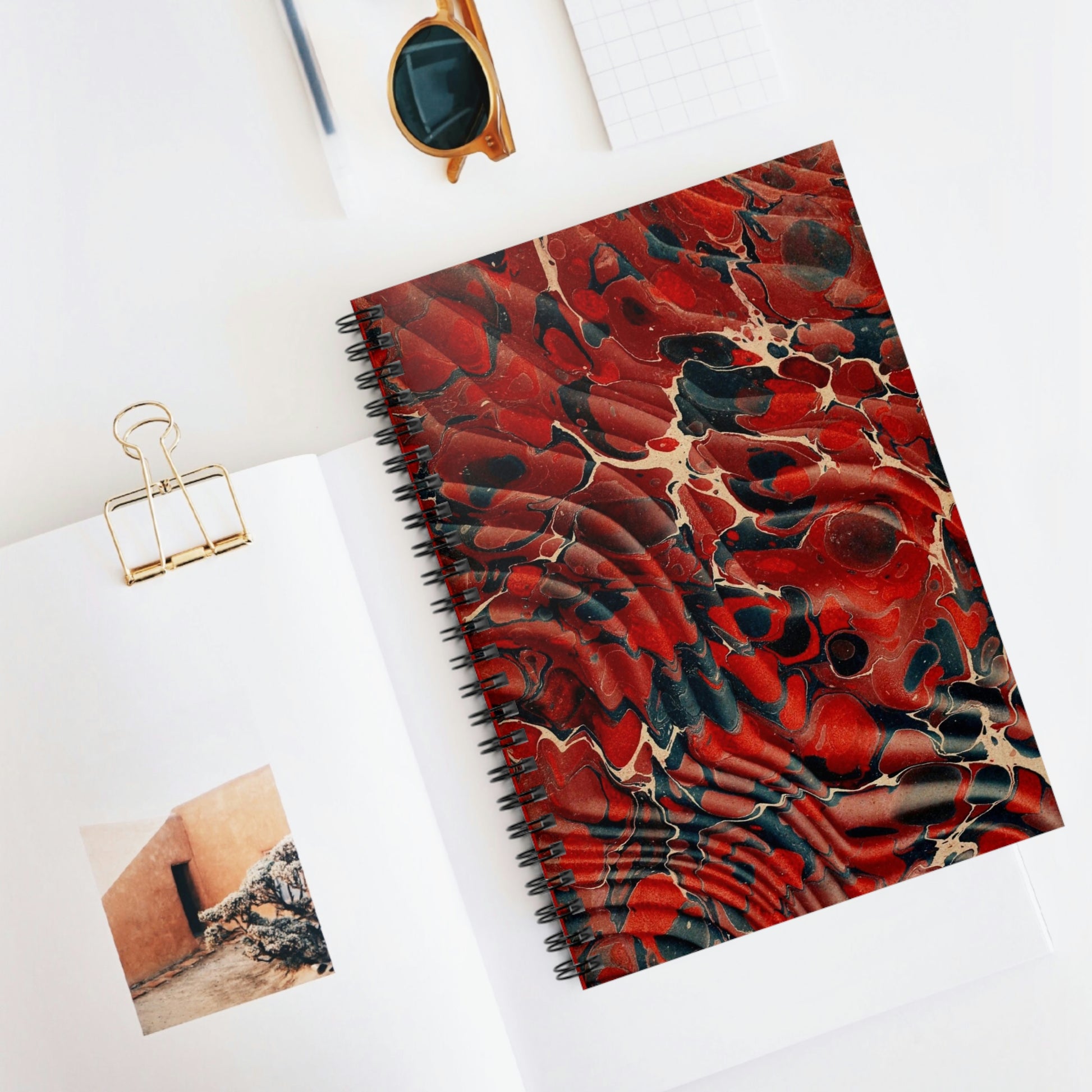 Spiral Notebook Dark Red Dark Blue Marbling - Ruled Line