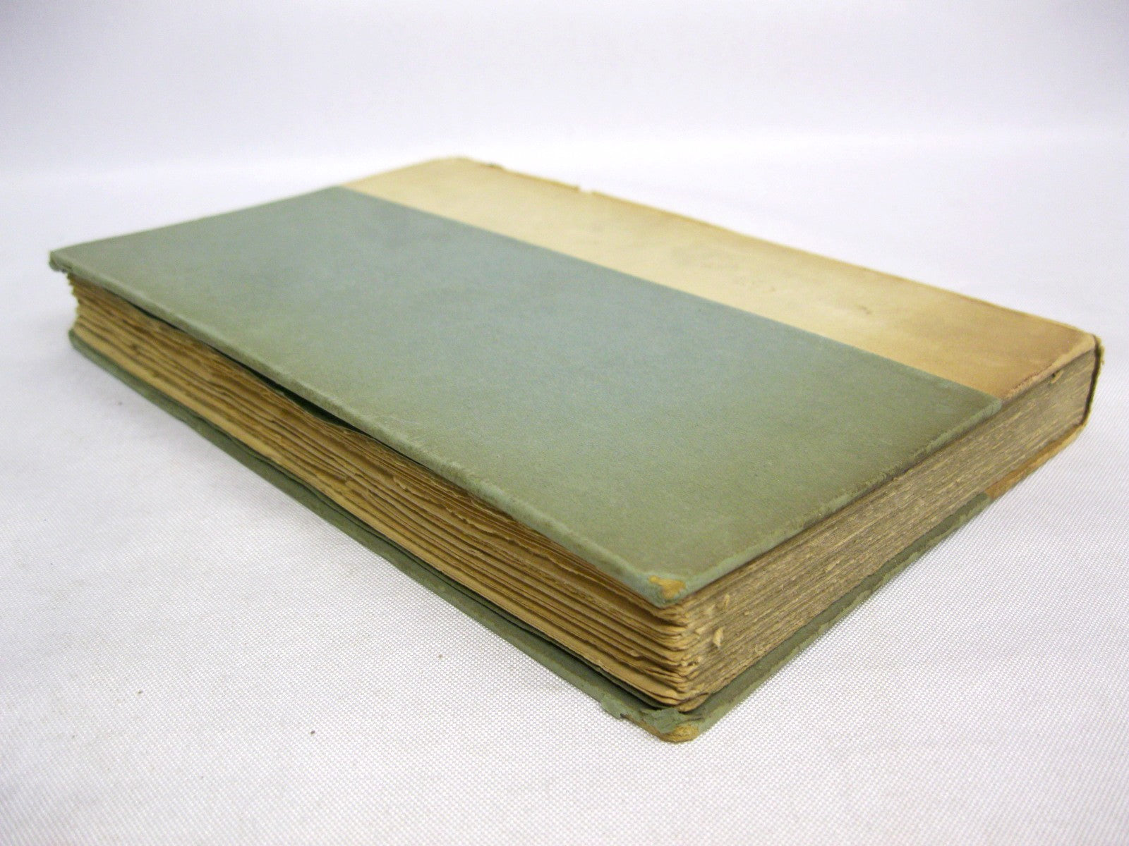 Condition: No dust jacket, vellum spine worn and darkened, cracking along lower spine edges. In the back of the book there is included an extra replacement title card for the spine which could be applied on its own or available in case of a rebinding. Light blue cover boards also somewhat darkened, and there is edge wear and rubbing to corners. The interior is on the whole clean and neat, with minimal apparent faint discoloration to be found. Binding is secure.