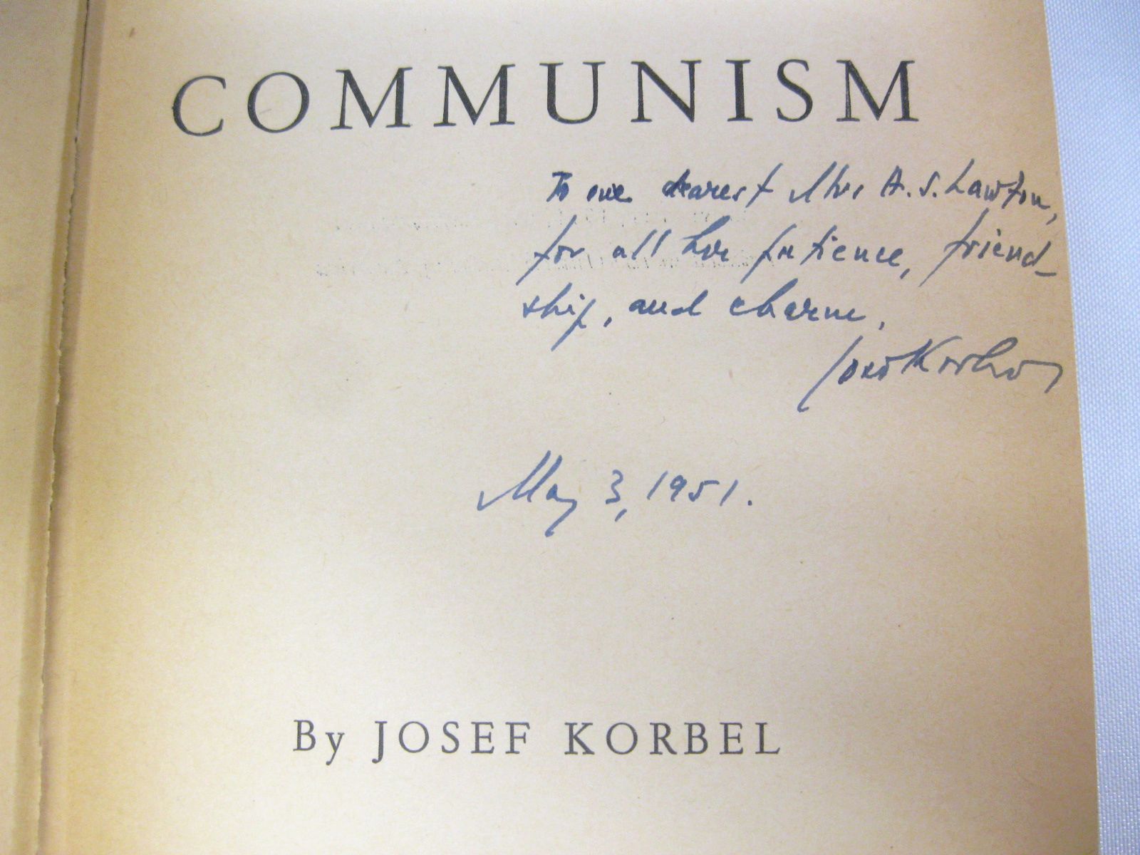 SIGNED and inscribed by Korbel on the title page: "To our dearest [...] A.S. Lawton, for all the patience, friendship, and charm, Josef Korbel / May 3, 1951"